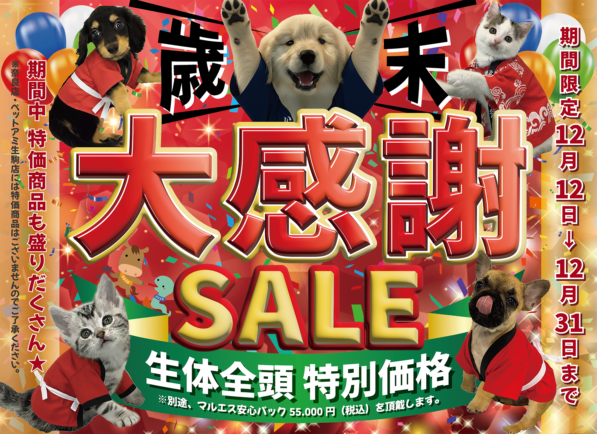 性別 こだわらない 男の子 女の子 種類で探す 未指定 チワワロングチワワスムースパピヨンポメラニアンミニチュアピンシャーヨークシャテリアマルチーズトイプードルシーズーミニチュアダックス・ロングミニチュアダックス・スムースジャックラッセルテリアスピッツビションフリーゼミニチュアシュナウザービーグル柴犬豆柴ペキニーズパグボストンテリアブルドッグキャバリアボーダーコリーシベリアンハスキーバセットハウンドワイマラナーセントバーナードスタンダードプードルウェルシュコーギーイタリアングレーハウンドアメリカン・コッカーカニヘンダックス・ロングハーフグレートピレニーズニューファンドランドシェットランドシープドッグ秋田犬ミニチュアプードル紀州犬イングリッシュコッカーウィペットフレンチブルアメリカンコッカーラブラドールレトリーバーゴールデンレトリーバーミニチュアダックスフンドホワイト・スイス・シェパードグレート・ピレニーズミックスシャーペイハーフ(マルプー)ハーフ(ドゥードル)フラットコーテッドレトリーバーカニヘンダックス・スムースミニチュアブルテリア 価格で探す ~ 円 ※半角数字でご入力ください。 店舗で探す 未指定 いかるが店奈良店はんな店押熊店枚岡店富雄店キャットファームドッグファームペットアミ富士見台店HS生駒店段原SC店レオン動物病院富士店島田店ホームアシスト店清水駒越店湯河原店御殿場店千鳥町店相模大野店稲沢HL店岡崎美合店 性別 こだわらない 男の子 女の子 種類で探す 未指定 アメリカンショートヘアスコティッシュフォールドブリティッシュショートヘアノルウェージャンメインクーンマンチカンペルシャエキゾチックベンガルロシアンブルーソマリラグドールシンガプーラエキゾチックショートヘアハーフミヌエットラガマフィンヒマラヤンシャムスコティッシュストレートサイベリアンエキゾチックロングヘアジェネッタスフィンクス 価格で探す ~ 円 ※半角数字でご入力ください。 店舗で探す 未指定 いかるが店奈良店はんな店押熊店枚岡店富雄店キャットファームドッグファームペットアミ富士見台店HS生駒店段原SC店レオン動物病院富士店島田店ホームアシスト店清水駒越店湯河原店御殿場店千鳥町店相模大野店稲沢HL店岡崎美合店 新しい仲間たち(ワンちゃん) 一覧へ 新しい仲間たち(ワンちゃん) トイプードル(動画あり) 男の子 2024/08/04 価格:¥283,800 新しい仲間たち(ネコちゃん) 一覧へ 新しい仲間たち(ネコちゃん) ラグドール(動画あり) 男の子 2025/05/10 価格:¥258,000 おすすめ ワンちゃん一覧へ おすすめ ワンちゃん ペキニーズ(動画あり) 男の子 2025/10/13 価格:¥327,800 パピヨン(動画あり) 男の子 2025/10/14 価格:¥228,000 トイプードル(動画あり) 女の子 2025/07/26 価格:¥168,000 ミニチュアダックス・ロング(動画あり) 男の子 2025/10/09 価格:¥248,000 ヨークシャテリア(動画あり) 女の子 2025/10/06 価格:¥437,800 柴犬(動画あり) 男の子 2025/10/05 価格:¥148,000 トイプードル(動画あり) 男の子 2025/09/30 価格:¥184,800 ハーフ(パピヨン×トイプードル) 女の子 2025/10/13 価格:¥217,800 パグ 女の子 2025/03/24 価格:¥198,000 トイプードル(動画あり) 男の子 2025/10/12 価格:¥250,800 ゴールデンレトリーバー(動画あり) 男の子 2025/07/04 価格:¥118,800 ブルドッグ(動画あり) 男の子 2025/08/10 価格:¥328,000 おすすめ ネコちゃん一覧へ おすすめ ネコちゃん ラガマフィン(動画あり) 男の子 2025/08/01 価格:¥184,800 マンチカン(動画あり) 女の子 2025/09/28 価格:¥250,800 アメリカンショートヘア 女の子 2025/09/11 価格:¥55,000 ブリティッシュショートヘア(動画あり) 男の子 2025/09/04 価格:¥195,800 ベンガル 男の子 2025/05/19 価格:¥85,800 ラグドール(動画あり) 男の子 2025/09/10 価格:¥129,800 ソマリ(動画あり) 男の子 2025/09/16 価格:¥198,000 アメリカンショートヘア(動画あり) 女の子 2025/09/01 価格:¥128,000 マンチカン(動画あり) 男の子 2025/09/28 価格:¥173,800 エキゾチック 女の子 2025/07/05 価格:¥272,800 ミヌエット(動画あり) 男の子 2025/07/13 価格:¥261,800 ラガマフィン(動画あり) 男の子 2025/08/01 価格:¥195,800 デビュー前 ワンちゃん一覧へ デビュー前 ワンちゃん トイプードル コメント参照 2025/11/14 価格:お問い合わせください トイプードル コメント参照 2025/12/02 価格:お問い合わせください シーズー コメント参照 2025/11/04 価格:お問い合わせください チワワロング コメント参照 2025/11/07 価格:お問い合わせください ハーフ(マルチーズ×トイプードル) コメント参照 2025/10/25 価格:お問い合わせください ビションフリーゼ コメント参照 2025/11/06 価格:お問い合わせください デビュー前 ネコちゃん一覧へ デビュー前 ネコちゃん アメリカンショートヘア コメント参照 2025/11/03 価格:お問い合わせください スコティッシュフォールド コメント参照 2025/11/19 価格:お問い合わせください アメリカンショートヘア コメント参照 2025/11/16 価格:お問い合わせください サイベリアン コメント参照 2025/10/27 価格:お問い合わせく