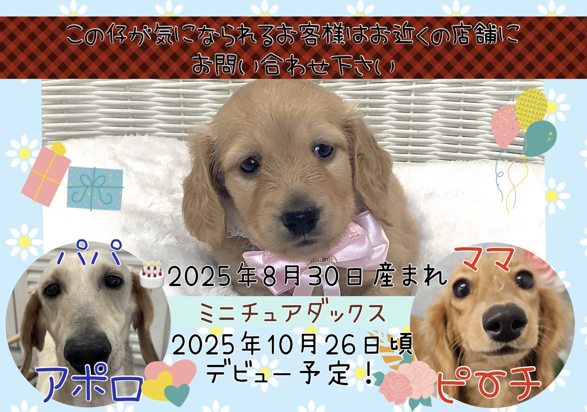 この仔達が気になられるお客様は、お近くの店舗にお問い合わせください