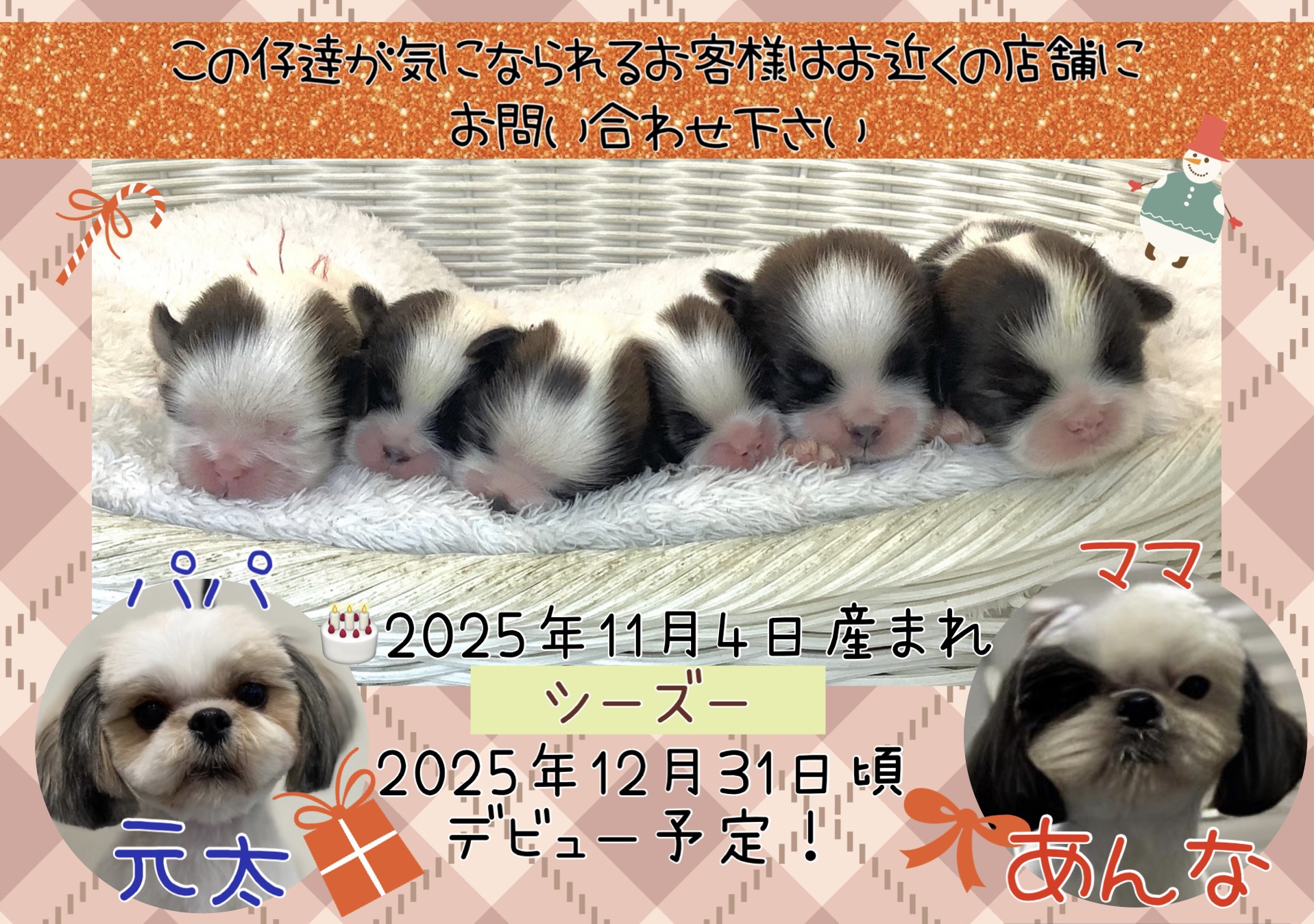 シーズー男の子3頭♂女の子3頭♀の6つ仔ちゃん