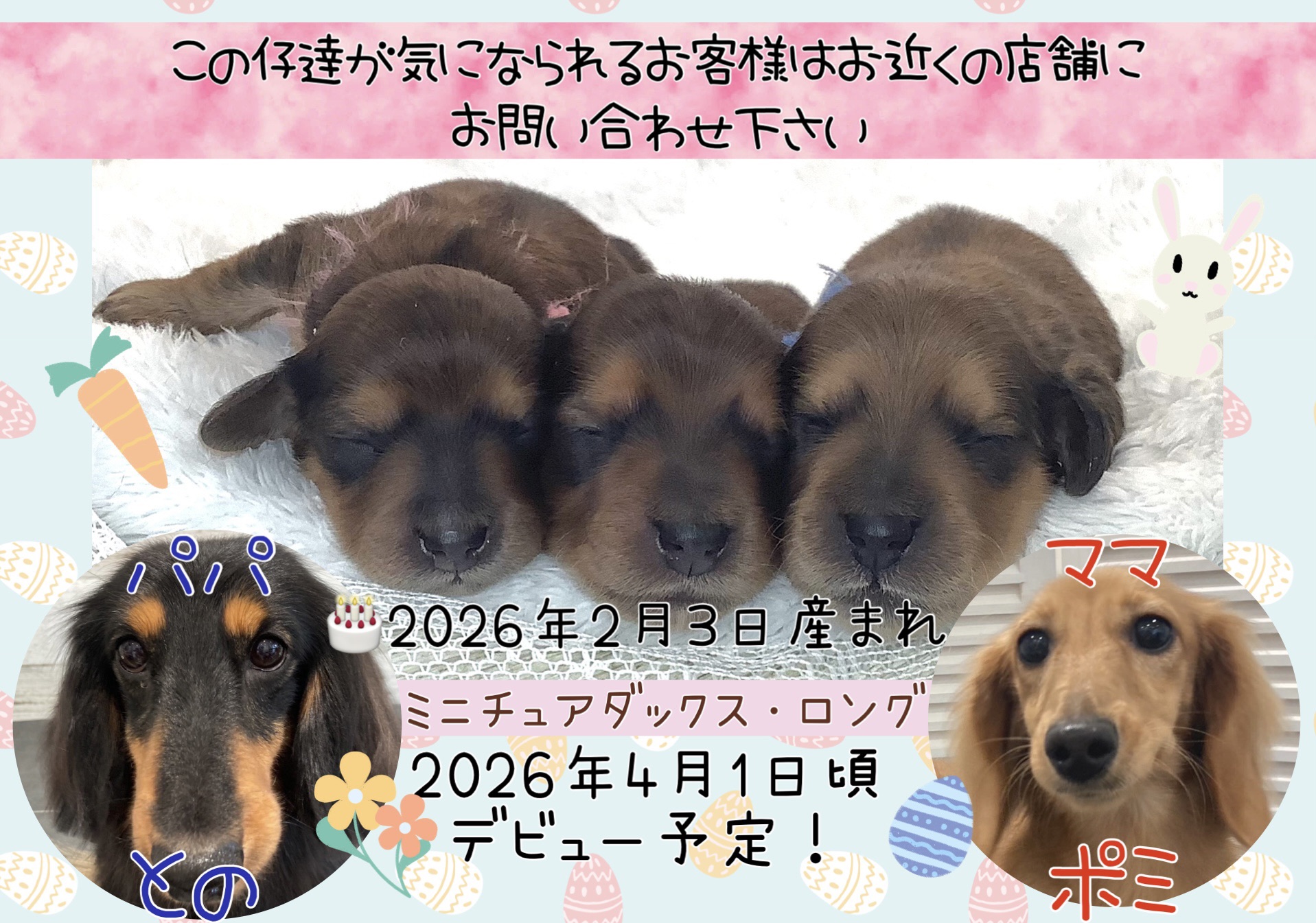 この仔達が気になられるお客様は、お近くの店舗にお問い合わせください