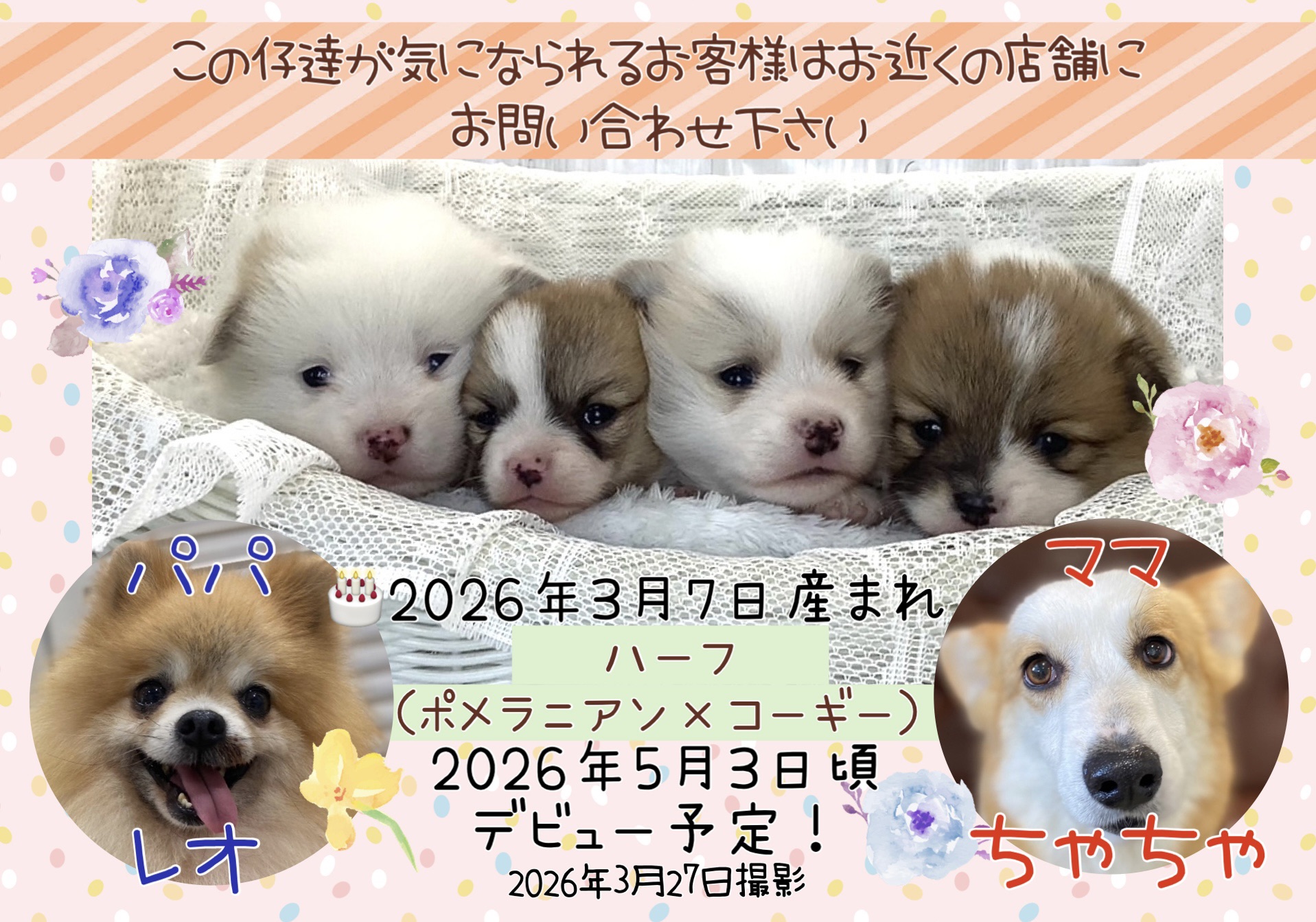 この仔達が気になられるお客様は、お近くの店舗にお問い合わせください