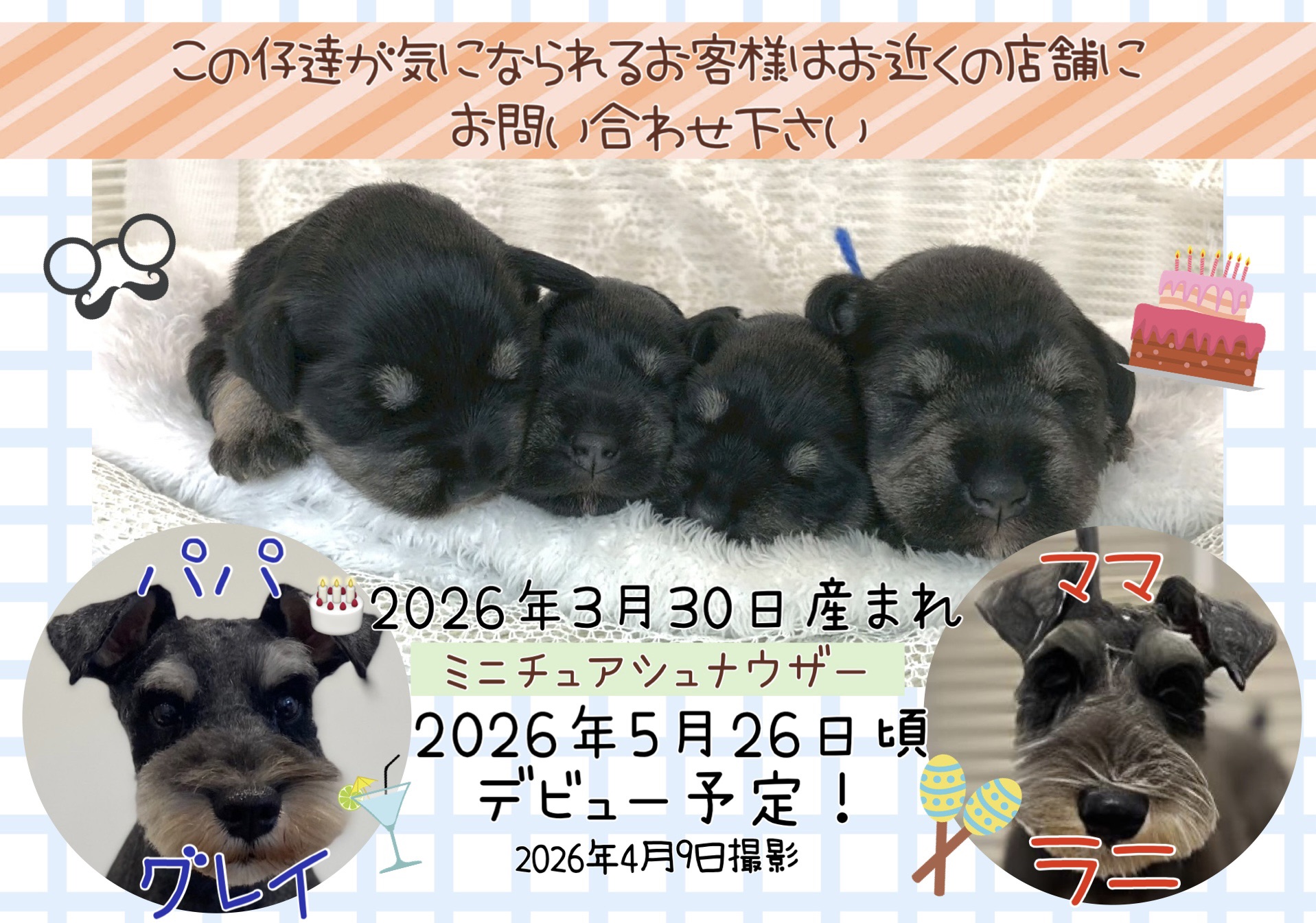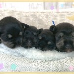ミニチュアシュナウザーの男の子1頭♂、女の子3頭♀の4つ仔ちゃん