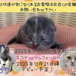 コメント | 元気いっぱいスコティッシュフォールドのひとりっ仔ちゃん パパ ママ デビュー予定日 ※価格は決まり次第、追記致します この仔達が気になられるお客様は、お近くの店舗にお問い合わせください |