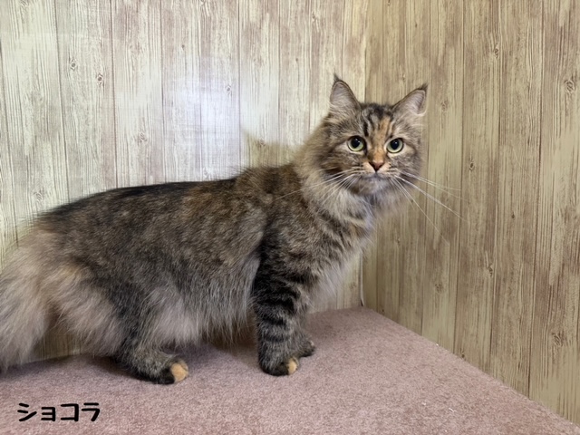 | コメント | 気品漂う立ち姿で、にゃんこ仲間といる時は孤高のクールビューティー☆ だけど、実はとっても甘えん坊な女の子 😆 他の猫ちゃんが居ないときは自ら寄ってきて、スリスリ『撫でて~』とアピールしてくるこのギャップ萌えがみんなを虜にする小悪魔女子です 😎 ゴージャスなしっぽと、ふわふわと柔らかな毛並みは、ずっと撫でていたくなる美しさのショコラちゃんです♡ |