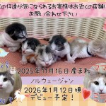 この仔達が気になられるお客様は、お近くの店舗にお問い合わせください
