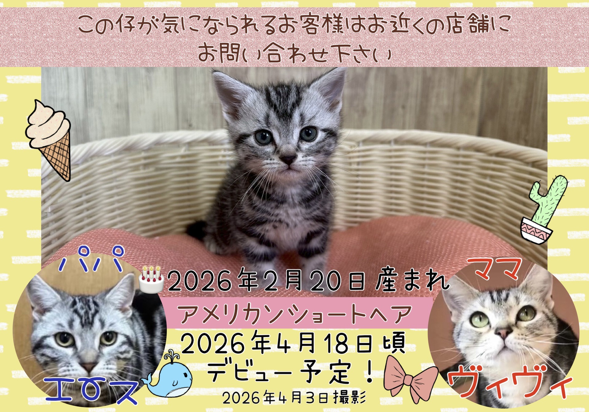 この仔が気になられるお客様は、お近くの店舗にお問い合わせください