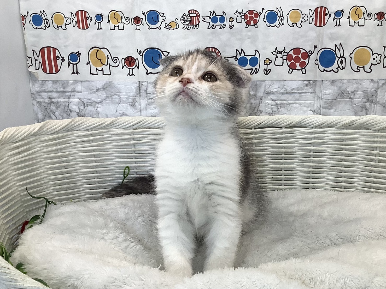 | 毛色 | ブルーパッチドタビー/ホワイト |