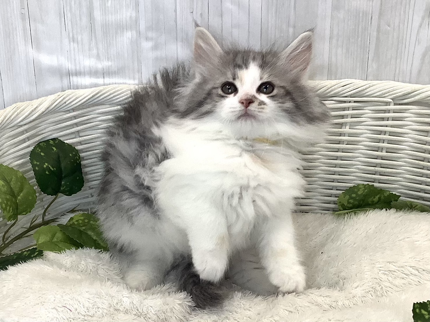 | 毛色 | ブルーパッチドタビー/ホワイト |